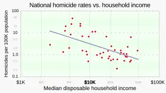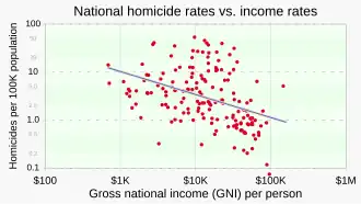 - ^ ● Homicide data from United Nations Office on Drugs and Crime (UNODC) (2024). "Homicide rate, 2023 / Annual number of deaths from homicide per 100,000 people". Archived from the original on 13 November 2024.