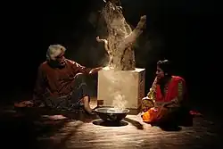 The following year, it produced several performances, which included Jhelum Mein Naupar (The Sailing Boat in Jhelum) featuring stage actress Amtul Baweja and an adaptation of Reginald Rose's famous film Twelve Angry Men as Twelve Angry Jurors[16] at different venues in Lahore. In summers, the group went on their first international tour at the 2nd International SPIC MACAY Convention held in Chennai, Madras, India where they collaborated with Koodiyattam master Margi Madhu from the Chakyar clan for the classical Sanskrit theatre performance of Anguliyankam (The Golden Ring) in June 2014.[17]