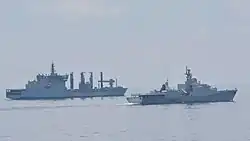 In August 2021, the Indian Navy's Eastern Fleet dispatched a task force of four warships on a two-month long operational deployment to Southeast Asia, the South China Sea and the Western Pacific Ocean.[86] Two ships, guided-missile destroyer INS Ranvijay (D55) and anti-submarine corvette INS Kora (P61), arrived at Cam Ranh on 15 August. They conducted surface warfare exercises, weapon firing drills and helicopter operations with Vietnamese Navy frigate Ly Thai To (HQ-012).[87] The task force also conducted bilateral exercises with the navies of the Philippines, Singapore (SIMBEX), Indonesia and Australia, before proceeding to Guam for Malabar 2021 with the Quad nations.[86]