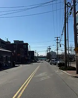 India Street is a downtown street and neighborhood in Portland, Maine, United States. Situated near the western foot of Munjoy Hill, it runs for around 0.28 miles (0.45 km), from Congress Street in the northwest to Commercial Street and Thames Street in the southeast. It was the city's first street,[1] and the location of the first settlement of European immigrants to the city (then called Falmouth) in the 17th century.[2][3] There are thirty handmade bricks in the sidewalk commemorating the neighborhood's notable events.[4] In 1680, when Thomas Danforth was Deputy Governor of the Massachusetts Bay Colony, the street was known as Broad Street. After the incorporation of the Town of Falmouth in 1718, the street was known as High King Street (or King Street).[5]