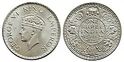 Due to World War I and II, there was a shortage of silver. As a result of the shortage, 0.917 silver one rupee coins were replaced by Quaternary silver alloy (0.500) in 1940. In 1947, the silver one rupee coin was replaced by nickel coins.[2]