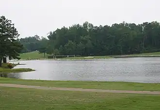 Indian Pines Golf Course is an 18-hole public golf course located in Auburn and adjacent Opelika, Alabama, USA. In 2005, the course was cited by Golf Digest in their rating of Auburn as the "best golf city in America".[1] It is a par 71 course with summer bermuda grass and a bentgrass/ryegrass mix in the winter. Indian Pines was originally constructed in 1946 as the Saugahatchee County Club, a nine-hole course, with the first tournament being held on July 4, 1947. The back nine holes, designed by Eddie Loos, were built in 1951.[2] In 1976, the course was sold to the cities of Auburn and Opelika, which have operated it as a municipal course since. The course was redesigned in 1999. After fire destroyed the old clubhouse, a new clubhouse was constructed in 2006.[3] Indian Pines hosts the Indian Pines Invitational, an amateur tournament drawing 200 participants and sponsored by Miller Lite.[4] Indian Pines is the home course of the Auburn High School Tigers golf team.