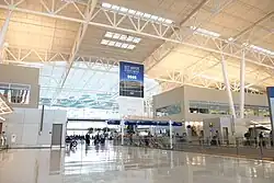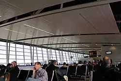 Indianapolis International Airport has a single terminal with two concourses and a total of 39 gates.[37] The current terminal opened in 2008 and is named in honor of Col. Harvey Weir Cook. It was one of the first designed and built in the U.S. following the September 11 attacks.[38] International arrivals are processed in Concourse A.[37]
