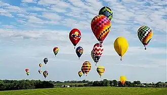 Indianola is city in and county seat of Warren County, Iowa,[4] United States, located 19 miles (31 km) south of downtown Des Moines. The population was 15,833 at the time of the 2020 census.[5] Indianola is home to the National Balloon Classic, a nine-day hot air balloon festival held annually in the summer, the Des Moines Metro Opera, a major American Summer Opera Festival, and Simpson College.