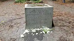 ![]() Remnant base of Theodore Roosevelt, Rough Rider on October 12, 2020, following the toppling of Alexander Phimister Proctor's equestrian statue of Theodore Roosevelt by protesters | |