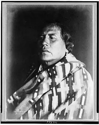The works of these early indigenous photographer stand in stark contrast to the romanticized images of non-native photographers. Recent scholarship by Mique’l Askren (Tsimshian-Tlingit) on the photographs of Benjamin A. Haldane has analyzed the functions that Haldane's photographs served for his community: as markers of success by having European-American-style formal portraits taken, and as markers of the continuity of potlaching and customary ceremonials by having photographs taken in ceremonial regalia. This second category is particularly significant because the use of the ceremonial regalia was against the law in Canada between 1885-1951.[2]