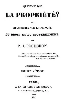 Mutualists argue for conditional titles to land, whose private ownership is legitimate only so long as it remains in use or occupation (which Proudhon called "possession").[21] Proudhon's mutualism supports labor-owned cooperative firms and associations[22] for "we need not hesitate, for we have no choice [...] it is necessary to form an ASSOCIATION among workers [...] because without that, they would remain related as subordinates and superiors, and there would ensue two [...] castes of masters and wage-workers, which is repugnant to a free and democratic society" and so "it becomes necessary for the workers to form themselves into democratic societies, with equal conditions for all members, on pain of a relapse into feudalism".[23] As for capital goods (man-made and non-land, means of production), mutualist opinion differs on whether these should be common property and commonly managed public assets or private property in the form of worker cooperatives, for as long as they ensure the worker's right to the full product of their labor, mutualists support markets and property in the product of labor, differentiating between capitalist private property (productive property) and personal property (private property).[24][25]