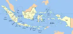 Map of provinces of Indonesia in the 21st century with names in Arabic.