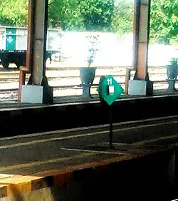 - Semboyan 2H: A green rhombus sign with white edges with the letters H, HH, or HHH in white indicating that the train can now move at the permitted speed. H means "exhausted", which means "end of speed limit".