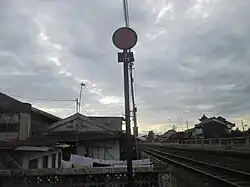If the white board with the black-edged circle is visible (facing the train), then the exit signal indicates "stop", so be careful. If the white board with the black-edged circle is parallel to the rail (rotating 90 degrees), then the exit signal indicates "go", so be invited to enter. | |
