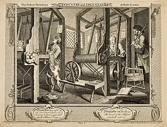Weaving with handlooms from William Hogarth's Industry and Idleness in 1747