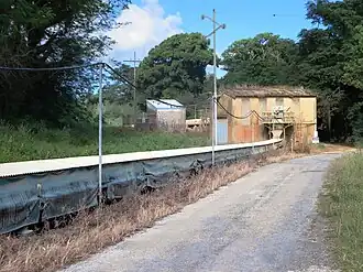 The Industrial and Administrative Group comprises the former Christmas Island Club, the ruins of the former Manager's house to the west of the club, the cemetery adjacent to these ruins, the Bulk Storage and Dust Storage Sheds, carpentry shop, the Padang, Administration Office, Wireless Operator's house, the remains of the Shinto Shrine near the tennis court, the Asian Clerks' quarters, the inscription to the completion of the first road in 1894 on the rockface behind the Asian Clerks' quarters, the bases of the pre-1915 and the 1935 phosphate chutes respectively behind the Asian Clerks' quarters and behind the Malay School, the Christian Centre (former library), fuel tank in No. 1 Tank Farm displaying strafe marks, the Hardware Store, the Down Hill Conveyer from Drumsite to the Dry Storage Bins, and the phosphate loading cantilevers at the wharf.[1]