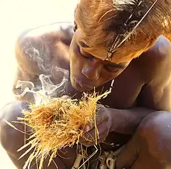 The first gas from the natural environment used by humans was almost certainly air when it was discovered that blowing on or fanning a fire made it burn brighter. Humans also used the warm gases from a fire to smoke foods and steam from boiling water to cook foods.