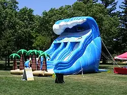 The phrase "inflatable park" may refer to both a collection of portable inflatables set up temporarily as one attraction,[18][19] or a permanent attraction consisting of inflatables.[20][21]