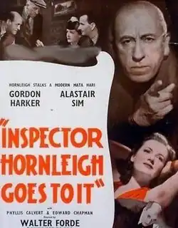Inspector Hornleigh Goes To It (U.S. title: Mail Train[1]) is a 1941 British detective film directed by Walter Forde and starring Gordon Harker, Alastair Sim, Phyllis Calvert and Edward Chapman.[1] It was written by J.O.C. Orton and Val Guest based on a story by Frank Launder, and was the third and final film adaptation of the Inspector Hornleigh stories.[2] It was released in America by 20th-Century Fox.