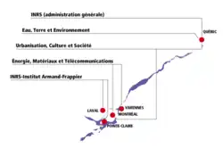 INRS has facilities in Quebec City, Montreal, Laval, and Varennes. It was established by letters patent from the Quebec Government and operates under the Act respecting the Université du Québec. [2]