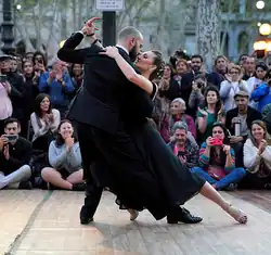 Other dance forms,[13] however, even if they are officially recognized as heritage from their country of origin, are practiced and enjoyed all over the world. For example, flamenco from Spain and tango, from Argentina and Uruguay, have an international dimension. Dance is a complex phenomenon, which involves culture, traditions, the use of human bodies, artefacts (such as costumes and props), as well as a specific use of music, space and sometimes light. As a result, a lot of tangible and intangible elements[14] are combined within dance, making it a challenging but interesting type of heritage to safeguard.
