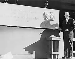 In the presence of a crowd of more than 30,000 gathered at the building site, the center's cornerstone was laid by then-President Dwight D. Eisenhower,[5] whose Secretary of State, John Foster Dulles, and Secretary of Health, Education and Welfare, Arthur S. Flemming, were active in the work of the National Council of Churches.