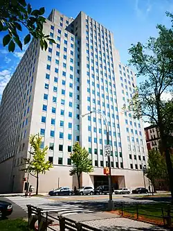 The Interchurch Center is a 19-story limestone-clad office building located at 475 Riverside Drive and West 120th Street in Morningside Heights, Manhattan, New York City. It is the headquarters for the international humanitarian ministry Church World Service, and also houses a wide variety of church agencies and ecumenical and interfaith organizations as well as some nonprofit foundations and faith-related organizations, including the Religion Communicators Council. The National Council of Churches also occupied the building from its inception, but in February 2013, the NCC consolidated its offices on Capitol Hill in Washington, DC, and vacated its New York headquarters facilities.[1] NCC's sister agency, Church World Service, remains a tenant in the building.
