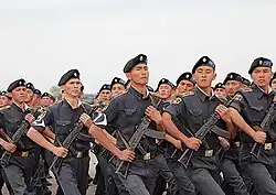 Kyrgyz internal troops during a rehearsal for a Victory Day Parade in Bishkek in 2015.