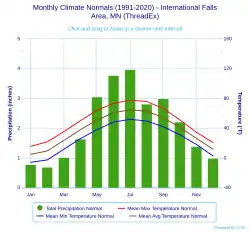 - ^ a b "Station: INTL Falls INTL AP, MN". U.S. Climate Normals 2020: U.S. Monthly Climate Normals (1991–2020). National Oceanic and Atmospheric Administration. Archived from the original on January 18, 2024. Retrieved June 23, 2021.