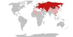Unlike the EBU, the OIRT was not limited to European and Mediterranean countries and operated as a global organization. Members of the organization included countries aligned with the Eastern bloc, such as Cuba, Vietnam, the People's Republic of China and North Korea (although the latter's membership was temporarily inactive after their break with the USSR), as well as the allies of the USSR that were temporarily led by communist parties, such as Nicaragua and the Democratic Republic of Afghanistan, and the African and Middle Eastern states having been temporarily associated or supported by the socialist camp.