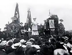 The Second International Socialist Women's Conference was held on August 26–27, 1910, in Copenhagen, in conjunction with the 1910 Socialist Copenhagen World Congress. One hundred delegates attended from seventeen countries. Among the groups represented were the Social Democratic women of Germany, the Women's Labour League, Federation of Socialist Women's Clubs from the Netherlands and many others. Though conference addressed a number of issues including social legislation, education, public health and the Czar's attempt to erode the sovereignty of Finland, its most animated discussions were on women's suffrage. A debate evolved between the English delegates who favored working with "bourgeois" feminists in order to secure piecemeal expansion of the franchise and the Germans and the "lefts" who felt it was best to merge the proletarian woman's movement into a larger working-class struggle to gain universal suffrage. The latter view predominated.[5] This conference is also remembered for endorsing the idea of an international day of concerted action to protest for female suffrage, on the model of the annual May Day celebrations.[6] This was eventually institutionalized as International Women's Day.