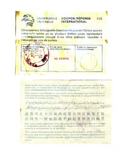 - ^ "Universal Postal Union: About international reply coupons". Upu.int. Archived from the original on 30 January 2014. Retrieved 30 January 2016.