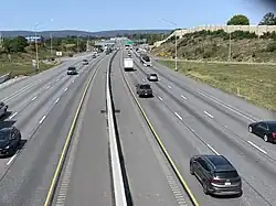 From 2012 to 2015, the I-83/PA 581 interchange outside of Harrisburg, Pennsylvania, was modified. Formerly, I-83 was reduced to one lane going northbound through the interchange, resulting in frequent traffic jams during peak travel times. The northbound part of the highway was widened, one bridge was replaced, and several exits in the vicinity were reconfigured.[6] A second project started in 2016, with work to be completed from its northern terminus at I-81 to just past the Union Deposit Road interchange. The project, completed in 2022, reconstructed two interchanges and associated overpasses, as well as widened adjacent sections of the highway to six throughlanes.[7][8]