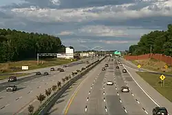 Following the completion of the widening of I-85 from milepost 49 to 55, a new project was started to widen I-85 from NC 73 in Concord northward to NC 152 in the town of China Grove. Like the prior project, I-85 was doubled in capacity, expanding from two travel lanes in each direction to four travel lanes in each direction. The first phase from NC 73 to the Lane Street interchange began in early 2014, and the second phase from Lane Street to NC 152 began in early 2017.[146] Construction was completed by December 2017, which left I-85 with at least six lanes of highway between the US 29 north/US 74 interchange in Kings Mountain and the I-40 interchange in Hillsborough.[147] In that same month, the US 321 interchange was reconstructed to help control the flow of traffic and was completed on February 26, 2021, relieving traffic problems.[19][148] Around November 2021, a new project by NCDOT called the "Integrated Corridor Management System" began along I-85 in Mecklenburg and Gaston counties. The project used cameras, electronic signs, and traffic lights that were remote-controlled. This also involved upgrading 94 traffic lights, adding two signs, and placing 11 cameras into the system to help predict any potential accident.[149][150] In 2024, from the US 321 interchange to I-485 through Gaston and Mecklenburg counties, due to congestion along the Interstate, the lanes are undergoing a study to accommodate larger amounts of traffic.[151]