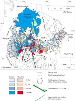 - ^ a b Foulger, G.R.; Christiansen, R.L.; Anderson, D.L. (2015). "The Yellowstone "hot spot" track results from migrating basin-range extension". In Foulger, G.R.; Lustrino, M.; King, S.D. (eds.). The interdisciplinary Earth: A volume in honor of Don L. Anderson. Geological Society of America. pp. 215–238. doi:10.1130/2015.2514(14). ISBN 9780813725147. S2CID 54675841.