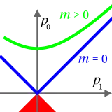 Possible 4-momenta of particles. One has zero invariant mass, the other is massive
