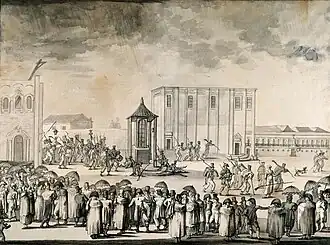 ![]() Painting of French troops entering Lisbon on 30 November 1807, by an alleged first-hand witness (grisaille watercolour by Luis António Xavier, c. 1807) | |||||||||