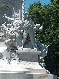 Solano's Spanish column belatedly invaded Portugal on 2 December 1807 while Taranco occupied Porto on 13 December. The only resistance was offered by the governor of Valença, who refused to open his gates to the northern column. He only caved in when he found that Lisbon had fallen and the Prince Regent had fled. While the Portuguese civil authorities were generally subservient toward their occupiers, the common people were angry. When Junot raised the French flag on Lisbon's public buildings on 13 December, a riot broke out. Mounted troops were sent into the streets to disperse the mob with force. As one of his first acts, Junot disbanded the Portuguese army by discharging all its soldiers with less than one year and more than six years of service. The remainder were assigned to nine new units and most were marched to northern Germany to perform garrison duty.[21] Two Portuguese units were employed by the French in the 2 August 1808 assault during the First Siege of Zaragoza. They were 265 men of the 5th Infantry and 288 men of the Caçadores.[22] The Portuguese Legion fought at the Battle of Wagram in July 1809 under the command of General Carcôme Lobo. The Legion counted 1,471 infantry in three battalions and 133 cavalry in two squadrons.[23] In 1812 the Portuguese troops were reorganized into three regiments and participated in the French invasion of Russia. Few of these unlucky men survived the campaign.[21]