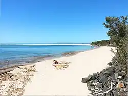 Inverloch's beaches include Twin Reefs, Shack Bay, Eagles Nest, The Caves, Flat Rocks, Main Surf Beach, two more surf beaches, Anderson Inlet-Western Beach, Anderson Inlet-Browns Beach, Anderson Inlet-Venus Street and Anderson Inlet-The Glades.[13] Twin Reefs, Shack Bay and Eagles Nest make up most of the Bunurong Marine National Park (excluding The Oaks in Cape Paterson). The Caves and Flat Rocks are a part of the Bunurong Marine Park, which starts at Coal Point in Harmers Haven.