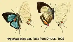 - ^ Savela, Markku (September 6, 2018). "Iolaus lalos (Druce, 1896)". Lepidoptera and Some Other Life Forms. Retrieved December 16, 2019.