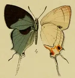 - ^ Druce, Hamilton H. (1910). "Descriptions of new Lycaenidae and Hesperiidae from tropical West Africa". Proceedings of the Zoological Society of London. 1910 (1): 371–372;Pl. 35, Fig. 4.