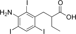 - ^ Renko K, Hoefig CS, Hiller F, Schomburg L, Köhrle J (May 2012). "Identification of iopanoic acid as substrate of type 1 deiodinase by a novel nonradioactive iodide-release assay". Endocrinology. 153 (5): 2506–13. doi:10.1210/en.2011-1863. PMID 22434082.