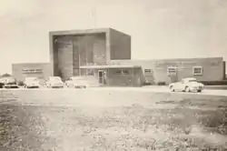 Wanting something sleek and modern, the Airport Commission approved Fisk's design, so in April 1952, McCreedy Construction began its work. Projected at a cost of $130,000, the south wing was a restaurant that could seat 30 people. The north wing was reserved for offices and United Air Lines was able to begin using theirs by late January 1953. The middle section on the first floor was used, of course, as a passenger waiting room, while the second floor was open – to be used for large group activities. The building was completed by April 11, 1953, at a total cost of $145,500. The dedication was held on Flag Day – Sunday, June 14, 1953.