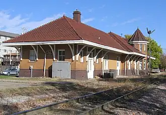 The Chicago, Rock Island and Pacific Railroad Passenger Station is a historic building located in Iowa City, Iowa, United States. Built in 1898 for passenger use, it was the second depot in the city.[2] The first one was built by the Mississippi and Missouri Railroad, a predecessor of the Chicago, Rock Island and Pacific Railroad (CRI&P), in 1855. This one was built through the efforts of Harry Breene, the local Rock Island agent. W.K. McFarlin, CRI&P's superintendent of maintenance and construction oversaw the building's construction. Architecturally, it is a combination of the Richardsonian Romanesque and Victorian Romanesque. The depot was built to similar designs of stations in Ottawa, Illinois, and Council Bluffs, Iowa.