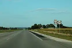 Iowa Highway 330 (Iowa 330) is a 47-mile-long (76 km) state highway that travels northeasterly from Altoona past Albion, to just north of Marshalltown in Marshall County. Originally the two-lane, unpaved road was numbered Iowa 88. It became part of Iowa 64 in the 1903s and it received its current route number in 1969. Iowa 330 is mostly a four-lane, divided expressway along much of its length. In conjunction with U.S. Route 65 (US 65), Iowa 14 and US 20, Iowa 330 is commonly used as a connector between Des Moines and the Waterloo–Cedar Falls area.