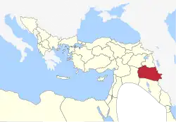The third, and largest, wave of Turkmen migration to Iraq arose during the four centuries of Ottoman rule (1535–1919).[24][30] By the first half of the sixteenth century the Ottomans had begun their expansion into Iraq, waging wars against their arch rival, the Persian Safavids.[33] In 1534, under the reign of Suleiman the Magnificent, Mosul was sufficiently secure within the Ottoman Empire and became the chief province (eyalet) responsible for all other administrative districts in the region.[34] The Ottomans encouraged migration from Anatolia and the settlement of immigrant Turkmen along northern Iraq, religious scholars were also brought in to preach Hanafi (Sunni) Islam.[34] With loyal Turkmen inhabiting the area, the Ottomans were able to maintain a safe route through to the southern provinces of Mesopotamia.[24] Following the conquest, Kirkuk came firmly under Turkish control and was referred to as "Gökyurt",[35] it is this period in history whereby modern Iraqi Turkmen claim association with Anatolia and the Turkish state.[35]