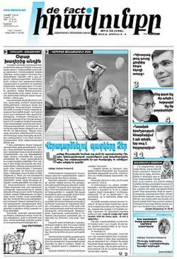 Irates (in Armenian Իրատես) (stylized as de facto in Latin alphabet) is an Armenian language newspaper published by "Tesaket Ltd" in Armenia twice a week, Tuesdays and Fridays.