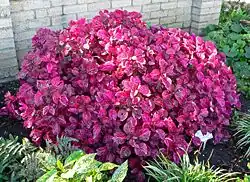 Iresine is a genus of flowering plants in the family Amaranthaceae.[2][1] It contains 20 to 25 species, all of which are native to the American tropics. The generic name is derived from the Greek word εριος (erios), meaning "wooly", referring to the trichome-covered flowers.[3] Bloodleaf[4] is a common name for those species that have colored foliage, and these are often cultivated as ornamental plants. Some species are additives to versions of the hallucinogenic drink ayahuasca.