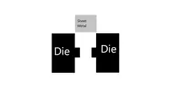 This process involves using force to evenly flatten a piece of sheet metal into a uniform shape.[1] This could also be the root of the process name, as it uses pressure to flatten the material much like fabric Ironing.