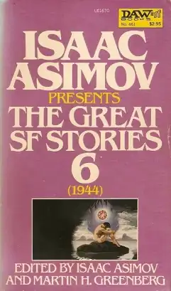 Isaac Asimov Presents The Great SF Stories 6 (1944) is the sixth volume of Isaac Asimov Presents The Great SF Stories, which is a series of short story collections, edited by Isaac Asimov and Martin H. Greenberg, which attempts to list the great science fiction stories from the Golden Age of Science Fiction. They date the Golden Age as beginning in 1939 and lasting until 1963. The book was later reprinted as the second half of Isaac Asimov Presents The Golden Years of Science Fiction, Third Series with the first half being Isaac Asimov Presents The Great SF Stories 5 (1943). This volume was originally published by DAW books in December 1981.[1]