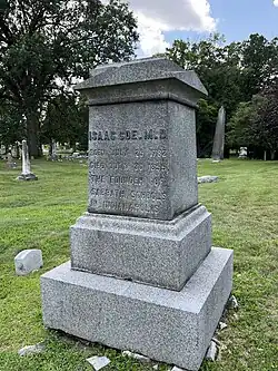 Coe arrived in Madison, Indiana, in early 1821, before relocating to Indianapolis in May.[4][3] He was the town's first physician with a medical degree[a] and is credited with saving the town from a malaria outbreak that nearly wiped out the town's citizens.[5][6][4][7] He was a founding member of the Indiana State Medical Society and served as its first chair and its second president.[4] He was a founder and superintendent of the Sunday school, a Bible School for adults, and the first church, Presbyterian Church of Indianapolis, which he designed and planned, and served as an Elder for 30 years.[4][2][7] He also led organizing of the state's anti-gambling society, which successfully led to the state's first prohibition on gambling.[8]