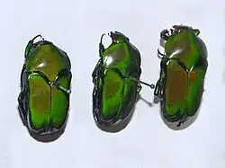 Ischiopsopha lucivorax can reach a length of about 25–31 millimetres (0.98–1.22 in).[3][4] These beetles have a bright green colour with reddish reflections.