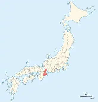 Ise Province (伊勢国, Ise no Kuni; Japanese pronunciation: [iꜜ.se (no kɯ.ɲi)][1]) was a province of Japan in the area of Japan that is today includes most of modern Mie Prefecture.[2] Ise bordered on Iga, Kii, Mino, Ōmi, Owari, Shima, and Yamato Provinces. Its abbreviated form name was Seishū (勢州).