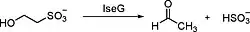 Isethionate sulfite-lyase (IslA, IseA or IseG) is a glycyl radical enzyme that catalyzes the degradation of isethionate into acetaldehyde and sulfite through the cleavage of a carbon-sulfur bond.[1] This conversion is a necessary step for taurine catabolism in anaerobic bacteria like Bilophila wadsworthia. IslA is activated by the enzyme IslB which uses S-adenoslymethionine (SAM) as the initial radical donor.